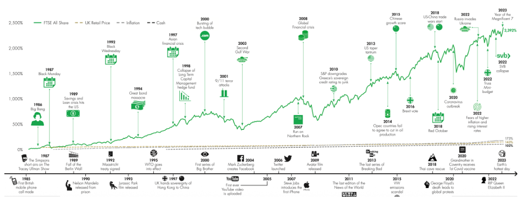 We’re not dismissing what’s happening - it’s serious, and the human cost is awful. But from a financial perspective, markets have lived through world wars, oil crises, financial meltdowns, pandemics, and countless geopolitical shocks. As you can see from the chart below from Liontrust, every time, the pattern has been the same: a sharp drop, a period of uncertainty, and then, gradually, a recovery.